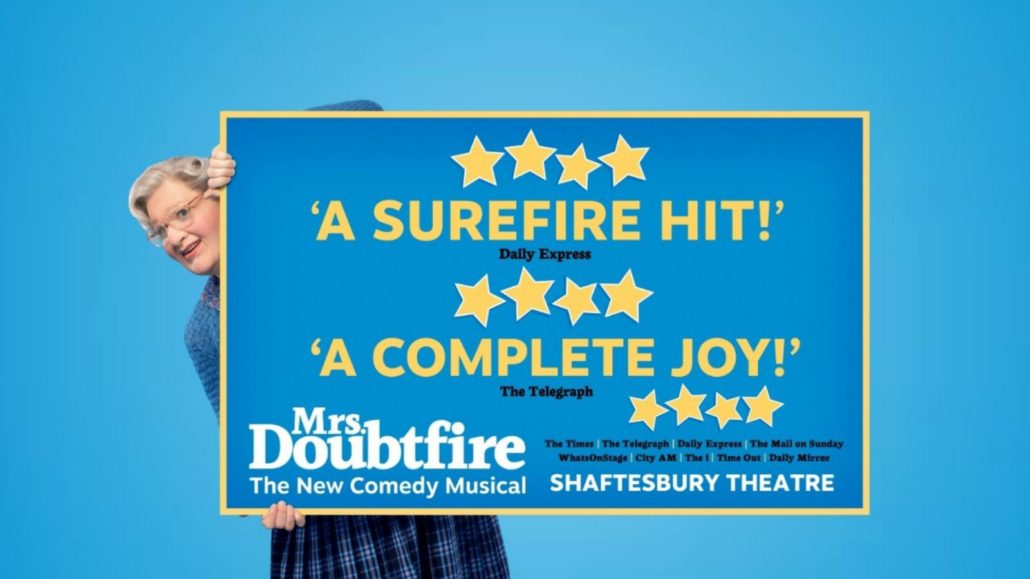 Mrs. Doubtfire is sure to be a hit with audiences of all ages. Don’t miss your chance to see this hilarious and heart-warming production!! Get your tickets now and prepare to be entertained by one of the year’s funniest and most endearing musicals in the West End.